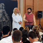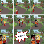 Se encuentran sentados hasta que al cabo de un rato; Pablo se mancha el pantalón con el helado.