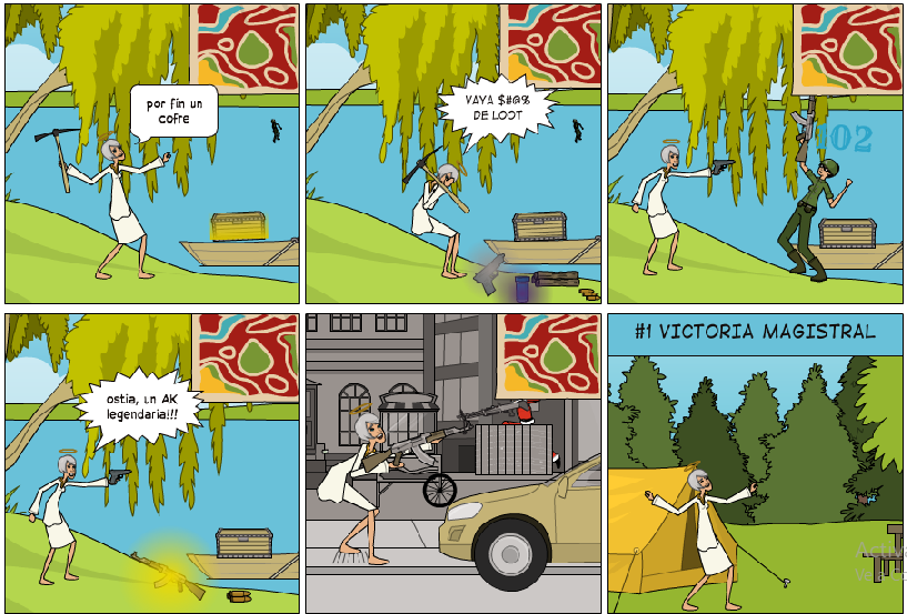 1 | 6 | Plano general en un camping. Arcángel sale alegre al hacer una victoria | Normal | Música de victoria |