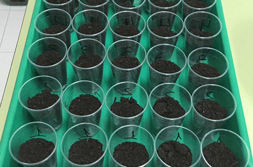 Cada muestra estará formada por 10 g de piedras que se colocarán en el fondo del vaso y 50 g de mantillo. Cada uno de los vasos tendrá cuatro perforaciones en su fondo para facilitar la salida del exceso de agua.