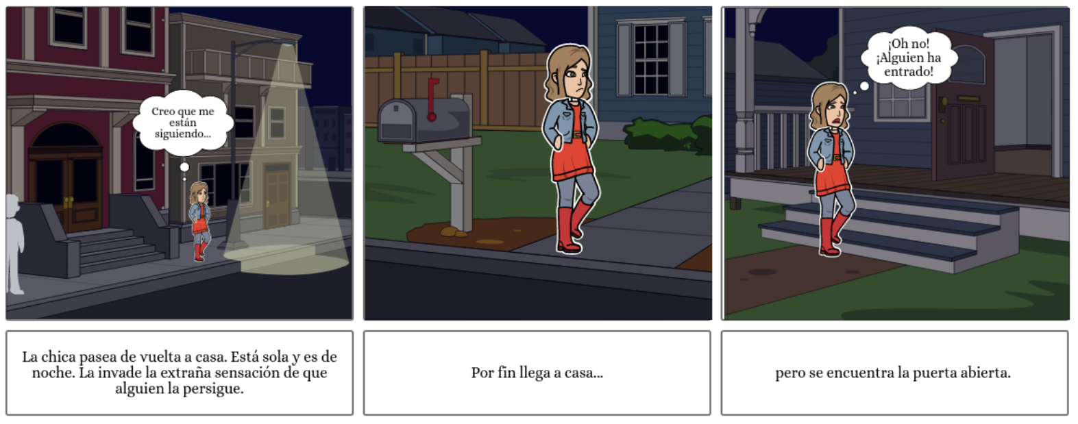 La chica pasea sola de vuelta a casa. Está sola y es de noche. La invade la extraña sensación de que alguien la persigue.